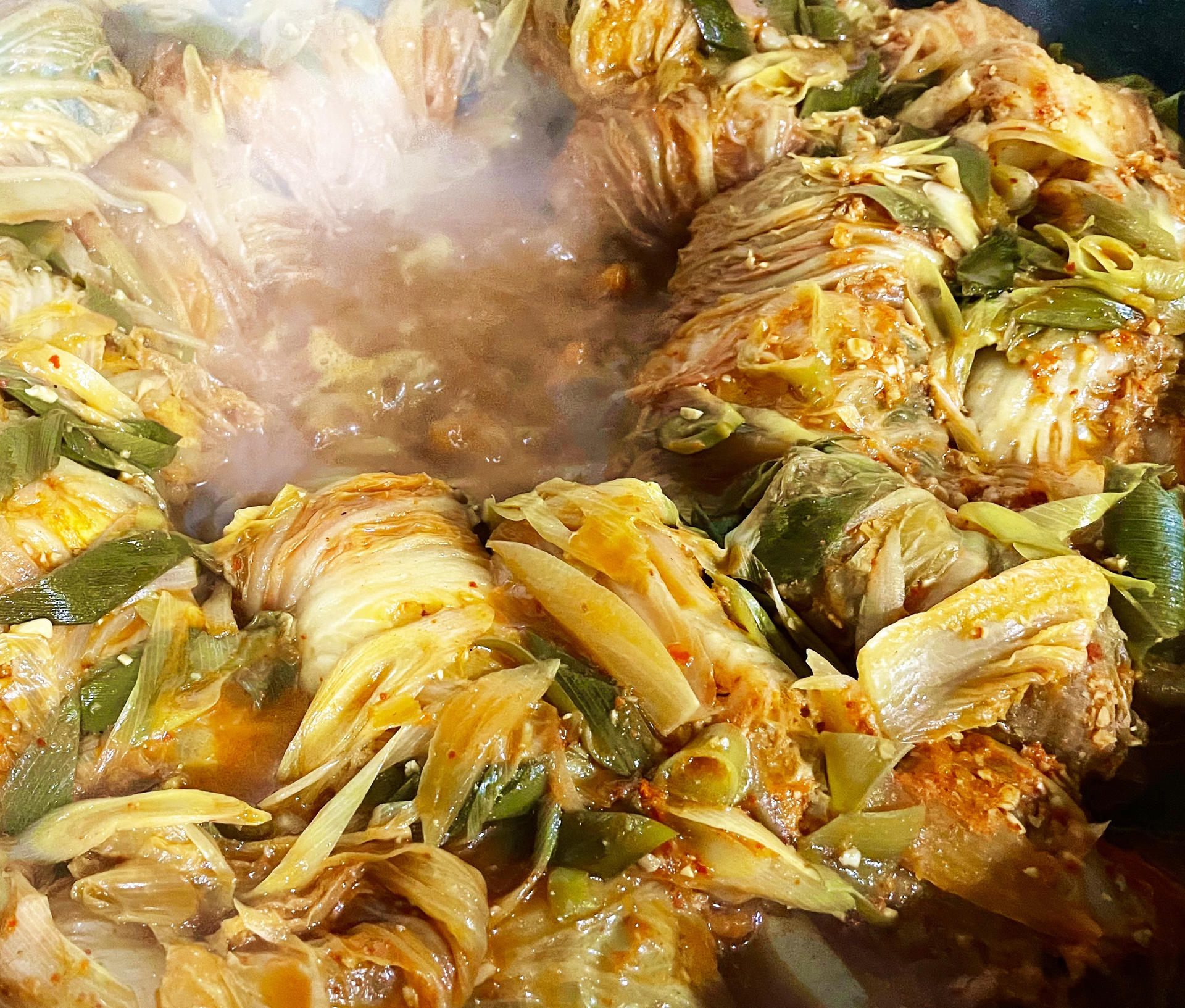 묵은지로 둘둘 말아 칼칼하게 익힌 반찬,